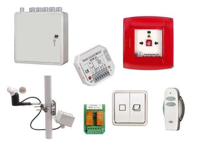 - Electrique : Centrale de commande 24v ou 48v de 5 à 75 ampères, accessoires de commande (DM, interrupteur, tête de détection...), centrale pluie/vent, télécommande...